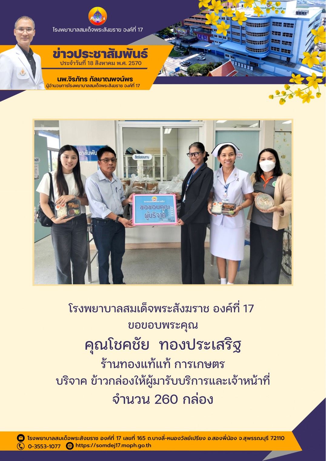 - การขึ้นบัญชีรายชื่อผู้ได้รับการคัดเลือกเพื่อจัดจ้างเป็นลูกจ้างชั่วคราวเงินบำรุง (รายวัน) ตำแหน่งนักวิชาการคอมพิวเตอร์ ตำแหน่งพนักงานการแพทย์และรังสีเทคนิค ตำแหน่งพนักงานเก็บเอกสาร และตำแหน่งพนักงานบริการ วันที่ 28 พฤศจิกายน 2025