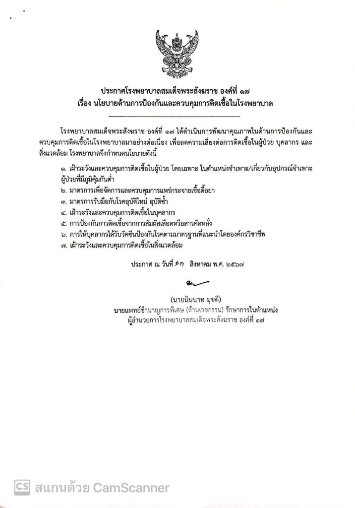 นโยบายด้านการป้องกันและควบคุมการติดเชื้อในโรงพยาบาล